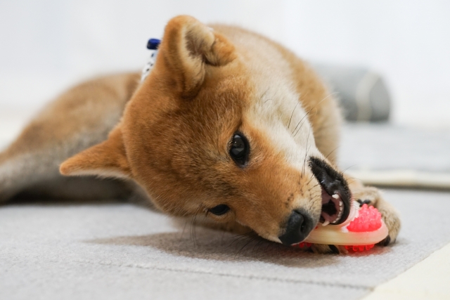 飼い主が外出した際、愛犬が一人でも遊べるように部屋の中に愛犬のお気に入りのおもちゃを置いてあげましょう。