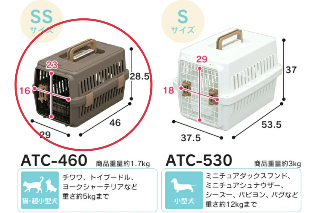 タテ・ヨコ・高さの合計が120センチ以内の動物専用のケースにいれたもののみOK