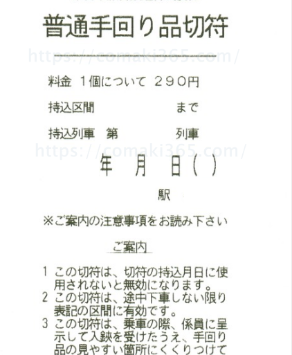 ご乗車になる駅の改札口などで荷物をお見せのうえ、普通手回り品きっぷをお求めください。