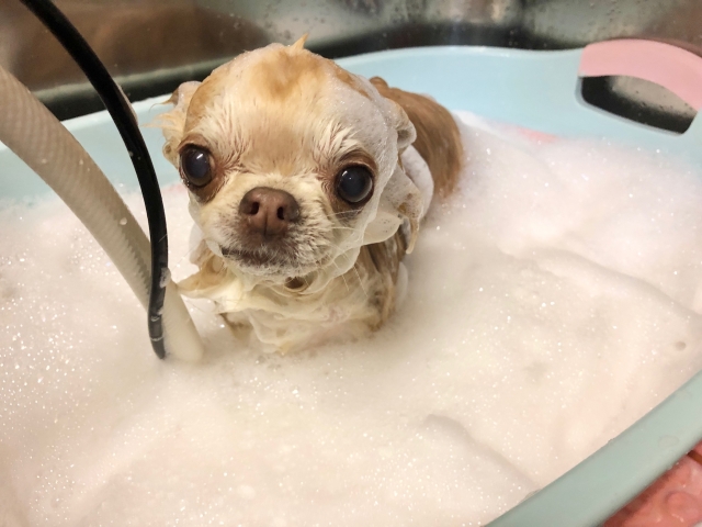 犬のシャンプーの目安は月に1回程度がいいそうです。(皮膚の状態にもよります)