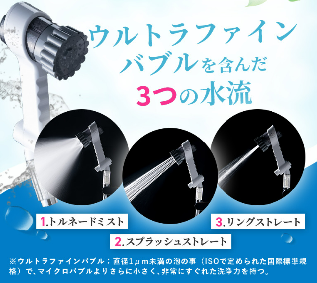 ミラブルプラスのシャワーヘッドは、毛穴よりも小さい泡(ウルトラファインバブル)を作り出し、毛穴の奥まで洗い上げることができます。