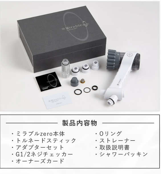 シャワーヘッドを替えるだけで、肌がきれいになる、髪にコシがでると話題のミラブルゼロ。